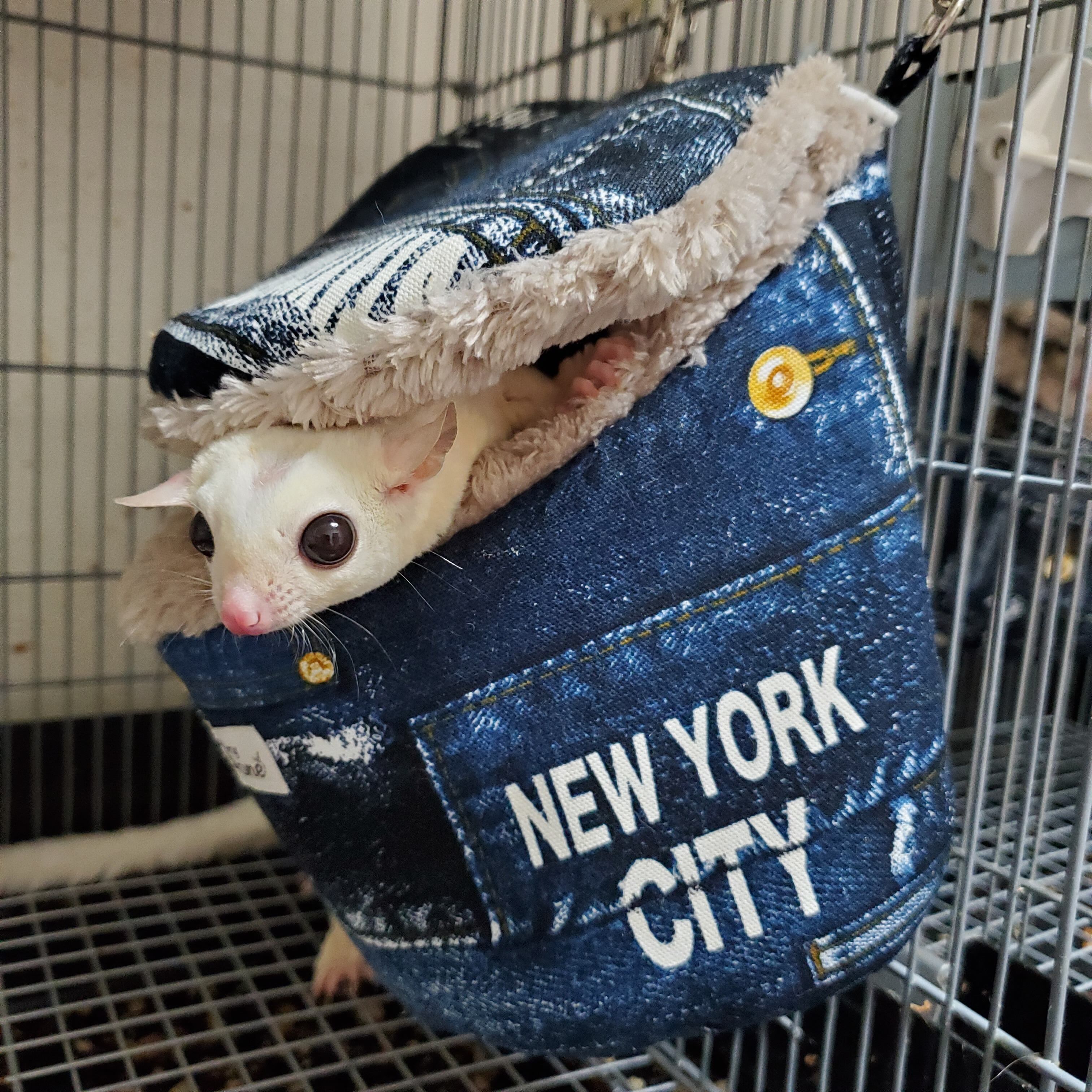 モモンガちゃん用ドラム型ポーチです。フタは取り外し可能です。