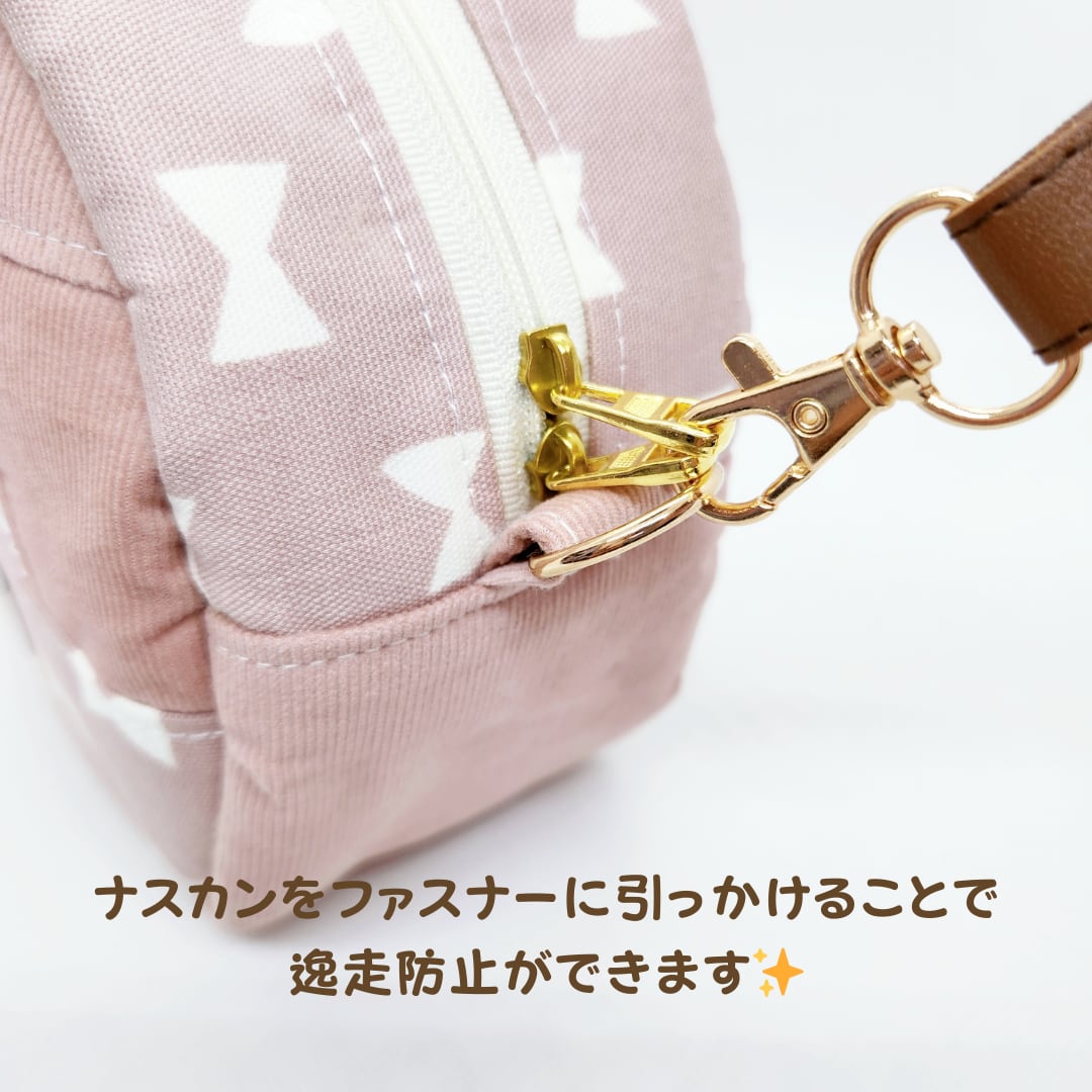 サークル型お出かけポーチ&ミニブランケットセット☘コーデュロイリボン(ダークグレー) モモンガポーチ 1~3モモ ショルダーバッグ 両開き