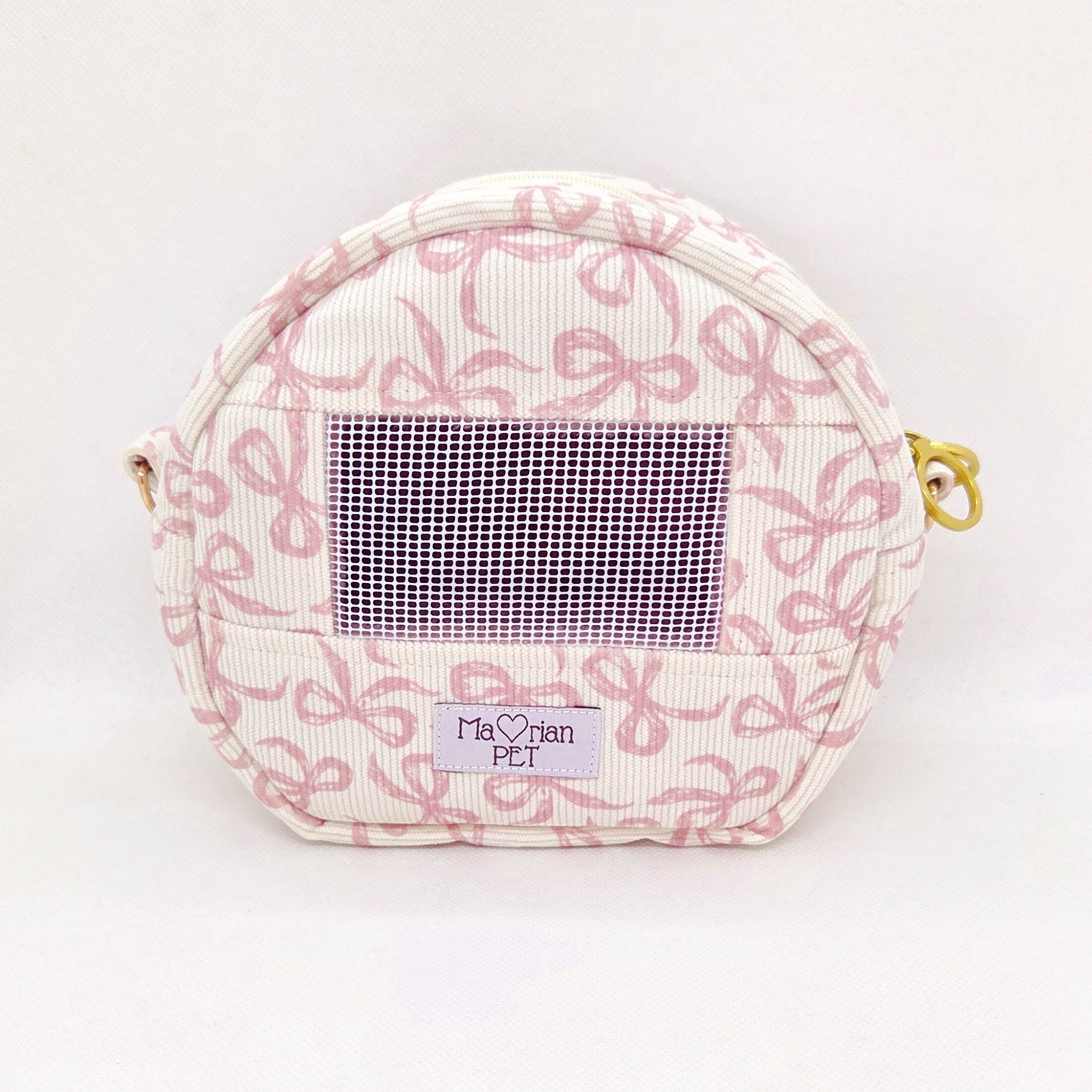 サークル型お出かけポーチ&ミニブランケットセット☘コーデュロイリボン(ピンク) モモンガポーチ 1~3モモ ショルダーバッグ 両開き