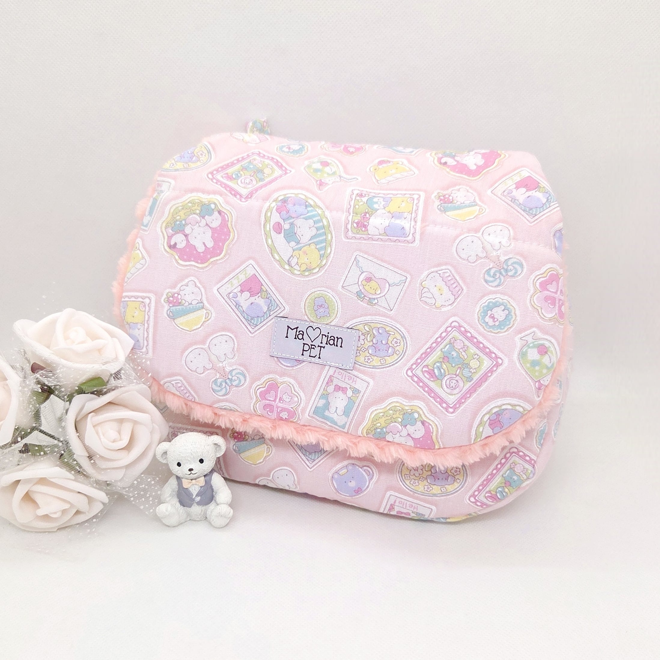 リュック型ポーチLサイズ♡モモンガポーチ ショウガラゴ デグー レトロアップリケ(ピンク)