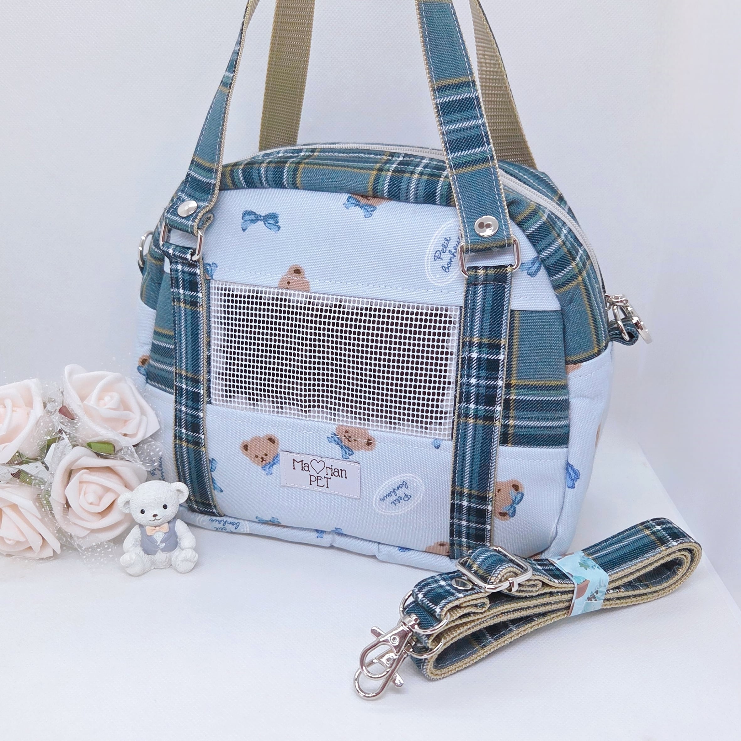 ハンドバッグとしても、ショルダーバッグとしてもお使いいただけます。中板付きで、中のペットさんがつぶれる心配もありません。中板は芯を外して丸洗い可能です✨